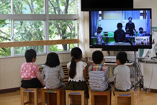 少し照れながらも東学園のお友達と好きな動物や、なぞなぞなどを出し合い、とても楽しそうにお話している子どもたちでした。