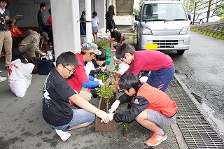 6年生を対象に緑育出前授業が行われました。様々な所から講師の先生方がいらっしゃり、樹木についての講話、またベンチ・プランターの作成を子どもたちにご指導くださりました。子どもたちは指導して頂きながら、初めての作業にイキイキと積極的に参加していました!最後には自分たちで作成したプランターに花の苗を嬉しそうに植えている子どもたちでした!