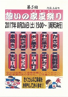 高森町 いこいの家 『夏祭り』 のご案内 投稿日時 : 2017/08/22 管理 憩いの家夏祭り《とき》2017年8月26日(土) 15:00~《ところ》高森町憩いの家(いこいのいえ)・雨天決行です。 ・駐車場はありませんのでご注意ください。・当日会場にて金券を購入してください。この夏をしめくくるお祭りとして、ちょっとのぞいてみませんか。お待ちしております!! 高森町ふれあい子ども会 より {{options.likeCount}} {{options.likeCount}}