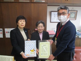 7日(水)、本ブログNO136で紹介した(公財)熊本法人会主催「税に関する絵はがきコンクール」受賞に係る賞状・副賞等を熊本法人会連合会女性部顧問の竹本様らに届けていただきました。2月17日の表彰式の案内をいただいていましたが、職員の参加ができず今回届けていただいた次第です。竹本様、ありがとうございました。