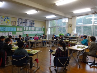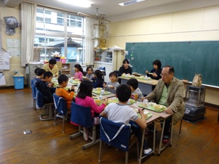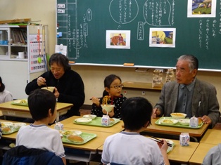 8日(木)、学校応援団であるあったかサポーターの皆さんをお招きして交流給食を行いました。日頃から読み聞かせや体験学習、学習補助、見守り支援など、多くの支援をいただいている地域の皆さんへの感謝の気持ちをお伝えすることができました。ご都合がつかず参加できなかった方もおいででしたが、多くの皆さんに参加いただけました。子どもたちの笑顔が一番のお返しですというお話は、とてもうれしく思いました。ありがとうございました。
