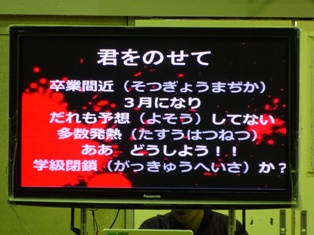 送別会では、各学年の6年生を送る演し物が披露され、体育館に何度となく笑いが巻き起こりました。感謝の言葉とともにプレゼントを受け取った6年生はうれしそうでした。