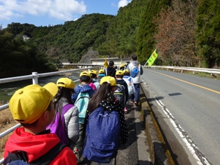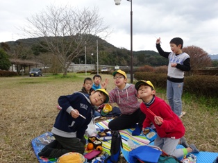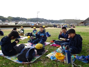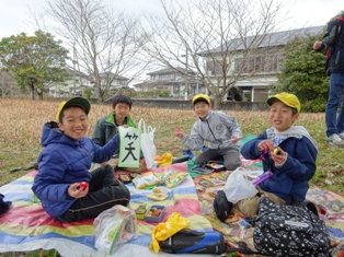 遠足は弁当を食べたり鬼ごっこに興じたりしました。帰りの道では5年生が披露した替え歌で盛り上がったりもしました。