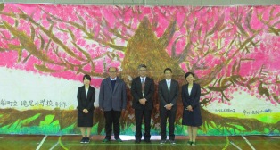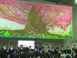 28日、以下5名の先生が滝尾小学校を去ることになりました。多くの方々に感謝しています。本当にありがとうございました。退任者5名の記念写真は体育館の「命の一本桜」を背景に撮影しました。
