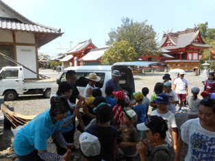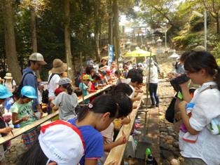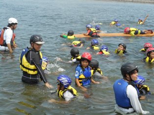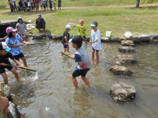 8月20日(土)・21日(日)、八代での『おもいっきり遊ぼう!くま川水浴場!子ども達への心の夏休み!』(以下、川の安全学習交流会)が行われました。本校からは、子どもたちとその家族、教職員が70名程参加しました。1日目の太田郷小の子どもたちと一緒の川の安全教室、水生生物観察、球磨川での水浴・カヌー体験、2日目のわいわいパーク、妙見宮、松中スポーツミュージアムなどの八代市内ミニ観光と、楽しく過ごすことができました。そうめん流しやバーベキュー、スポーツ合宿所での宿泊も、普段はできない体験で、子どもたちも満喫したようです。