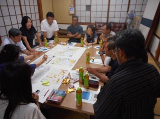 懇談会には、地震後、本校へ支援を続けていただいている「さくらネット」の石井さん・河田さんにも参加いただき、地域の実態について校区地図なども活用した意見交流を行いました。