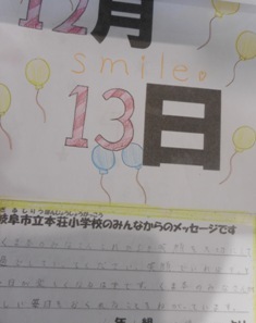 岐阜・本荘小学校から日めくりカレンダーのプレゼント