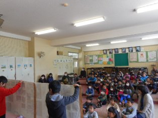 本年度、防災の日集会を主になってすすめた仲松主幹教諭は、6月、宮城県からの派遣として本校に赴任し、安全・防災教育に多くの示唆を与えてくれました。任期が3月末で、今回が最後の集会となりました。