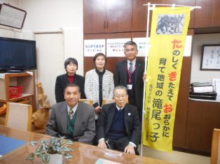 31日(水)、御船町で災害NPOとして活動されているレスキューストックヤード代表理事の栗田さんら4名が来校され、岐阜市立本荘小学校児童会からの手作り日めくりカレンダーを届けていただきました。