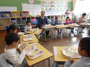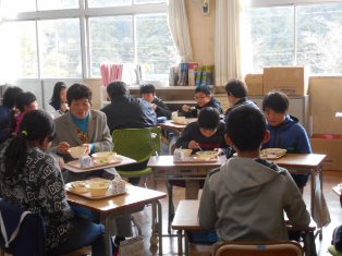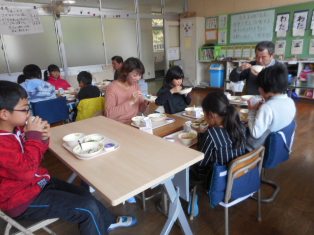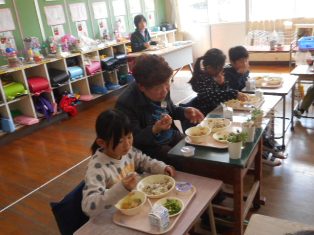 15日(水)、滝尾小あったかサポーター(学校支援ボランティア)をお招きして交流給食を行いました。各学年で机上に花を飾ったり、黒板にメッセージを書いたりしてサポーターのま皆さんへの感謝の気持ちを表していました。サポーターの皆さんも子どもたちの成長を喜んでおられました。