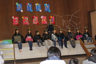 10日(金)、送別遠足に若宮堰ふれあい広場に出かけました。雲一つない初春の一日でした。出発前の「児童会引継式」「6年生を送る会」では、各学年が6年生を送る言葉や合唱を披露しました。
