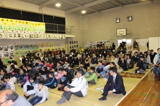 本年度、防災の日集会を主になってすすめた仲松主幹教諭は、6月、宮城県からの派遣として本校に赴任し、安全・防災教育に多くの示唆を与えてくれました。任期が3月末で、今回が最後の集会となりました。