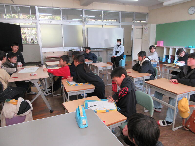 3年生と4年生で、学活の時間に話し合いをしていました! 3年生の話し合いを4年生が少し遠くから観て、アドバイスをしたりしていました