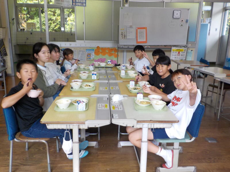 花丸「いただきます」をして、最初はシーンとしていた各教室でしたが、食べすすめる内に打ち解けてきて、最後の方にはおしゃべりが弾んでいました興奮・ヤッター! 学年を超えて仲良くなるって、とてもいいことです!