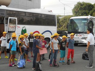 バスが2台並ぶのは、4年生の日帰りの見学教室も行われたためです。