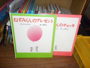 今回は、シリーズ絵本『ねずみくんのチョッキ』の著者:なかえよしをさん、挿絵:上野紀子さんからサイン入り絵本・応援メッセージが届けられました。また、読み聞かせに来られている津金さんからの素敵な布絵もありました。子どもたちには保育園や幼稚園の頃からの馴染みの絵本で、たいへんよろこんでいます。ありがとうございます。