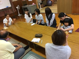 例年、町内の児童会・生徒会役員対象に実施されている町リーダー研修会が、今年は山口県からやってきた児童生徒40名と防災研修を主に交流が行われました。