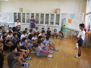 子どもたちの1学期を振り返っての発表や夏休みの生活についての先生方からの話などがありました。地震後の御船中での50日あまりは、実に多くの経験の機会でした。欠席が少なく、子どもたちはよくがんばった1学期でした。