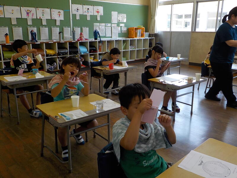 2年生は学活の時間に「歯の染め出し」をして、上手な歯磨きの仕方を学習しました! みんな丁寧に歯磨きをしていました! 上手な歯磨きで、歯を大事にしましょうね