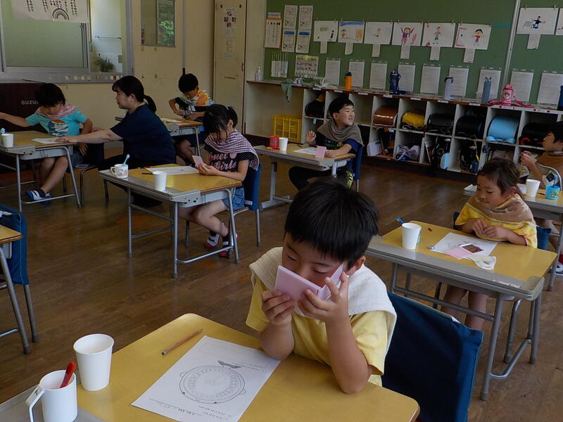 1年生は、カードに自分の好きな絵を描いて楽しんでいました! 上手に描いていましたよ
