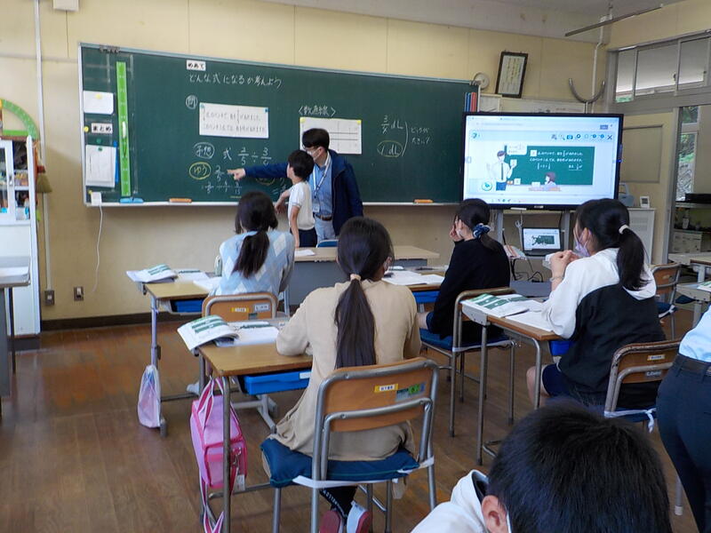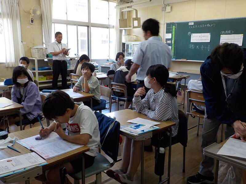 5年生は、算数でわり算の式を立てているところでした! 真剣に考えていましたね