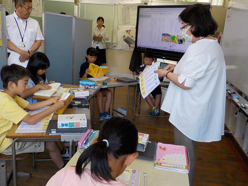 上益城教育事務所と御船町教育委員会から数名のお客様が来られて、授業の様子を参観されました!