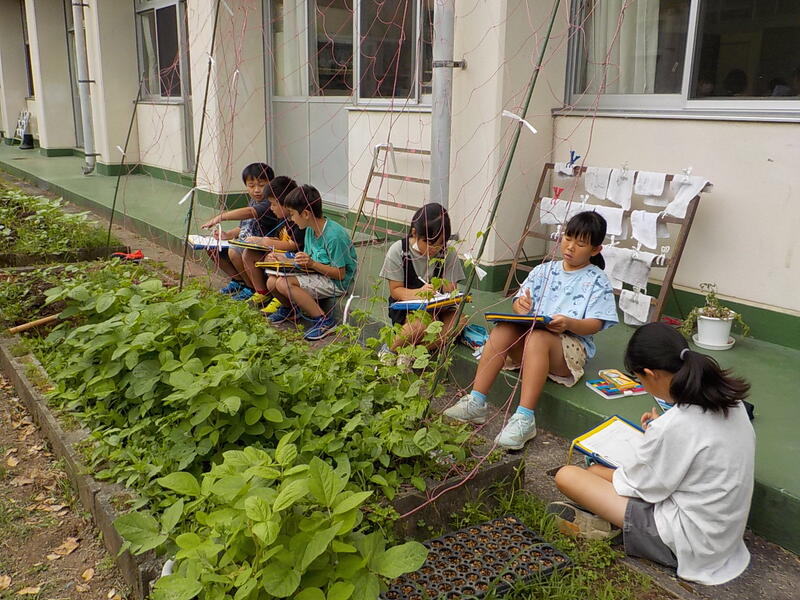 1年生は、あさがおのかわいい芽が出たので、スケッチをしていました! 上手にスケッチしましたね
