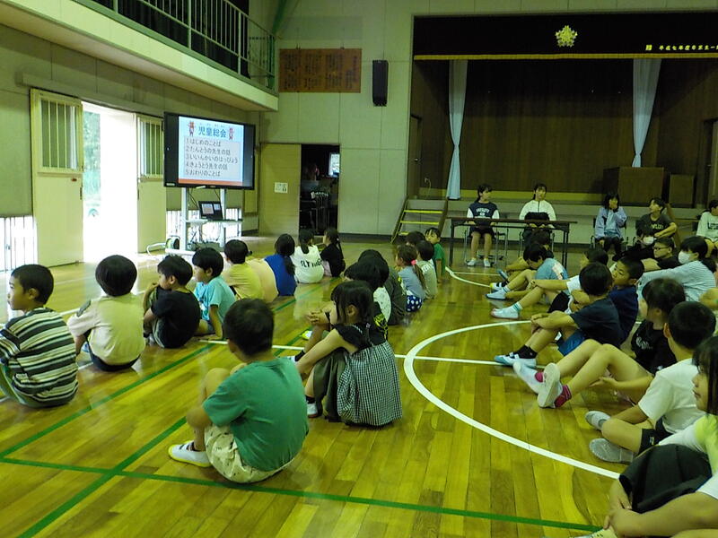 5時間目に、全校児童が体育館に集まり、「児童総会」を開きました! 各委員会が年間計画を発表しました。感心したのは、低学年もたくさん手を挙げて質問をしたことです