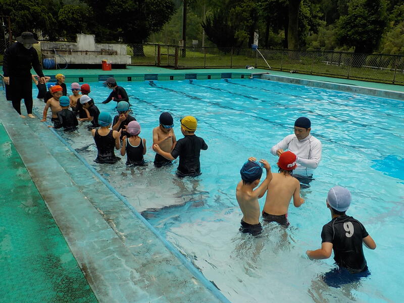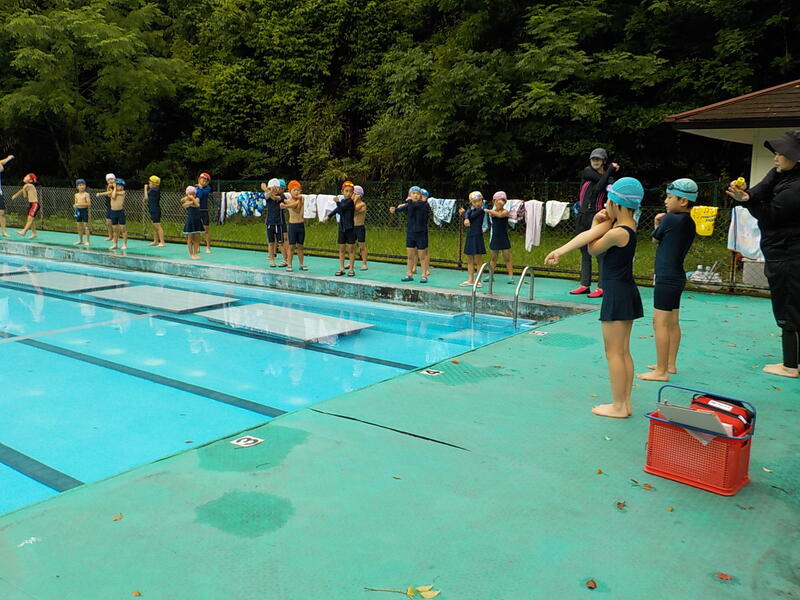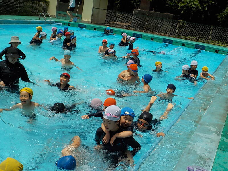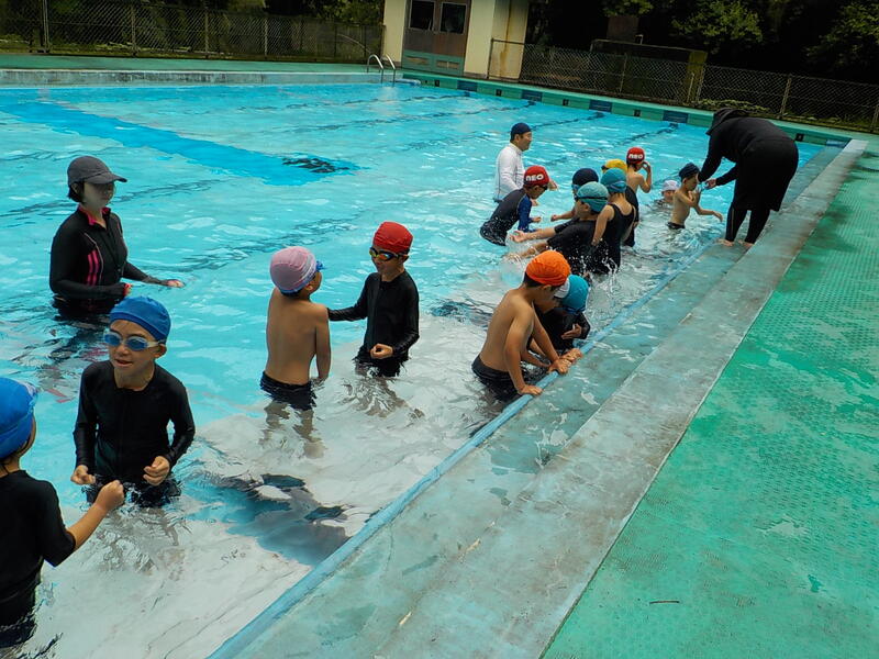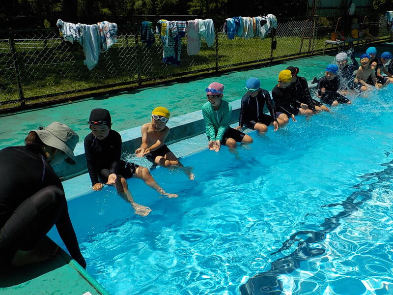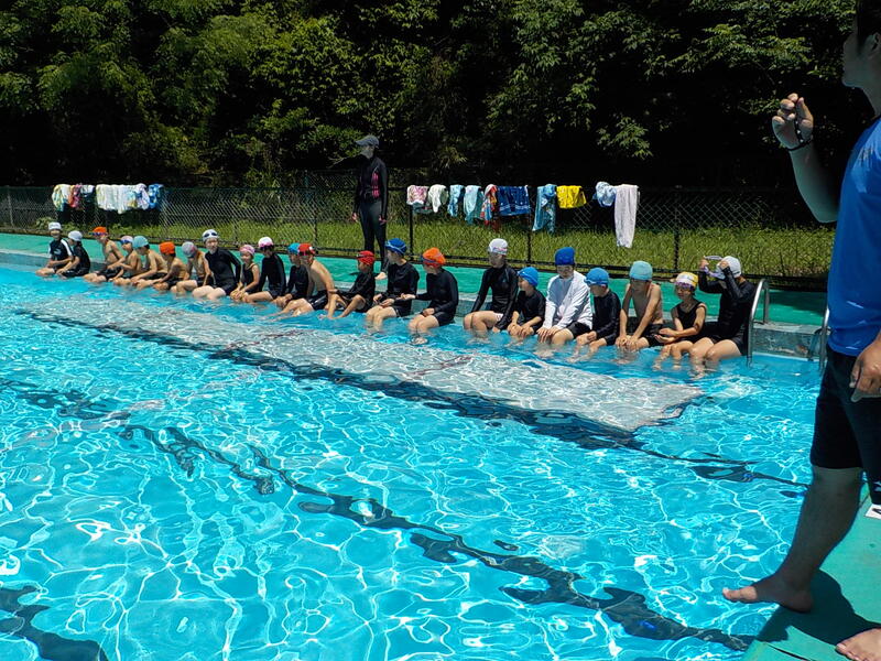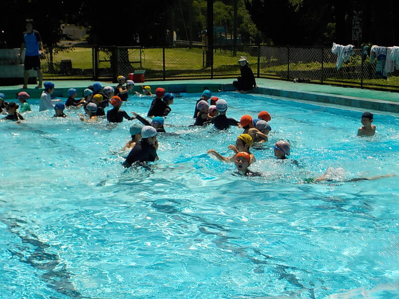 3~6年生は、けのび、二人組の伏し浮きで泳ぐ練習をしました! 5、6年生はプールを縦に泳いで、クロールを練習しました! 連日の高い気温で、プールの水はぬるかったです