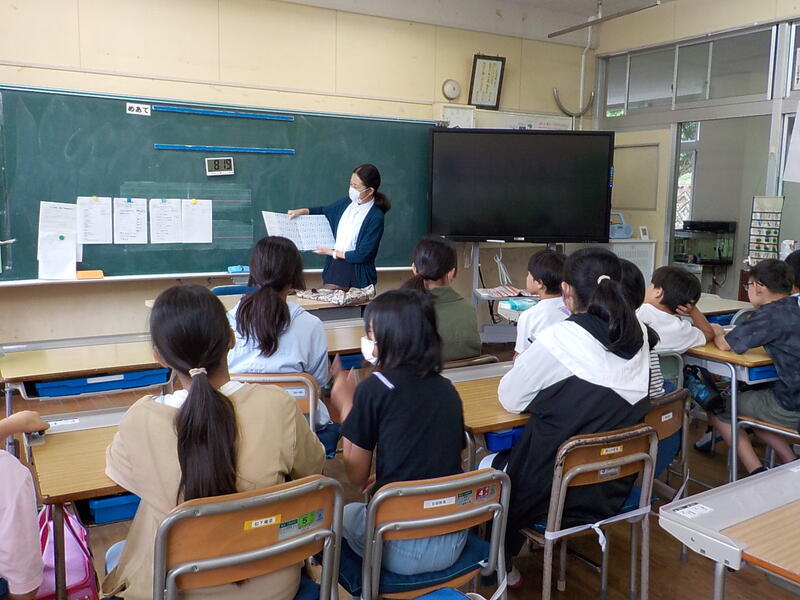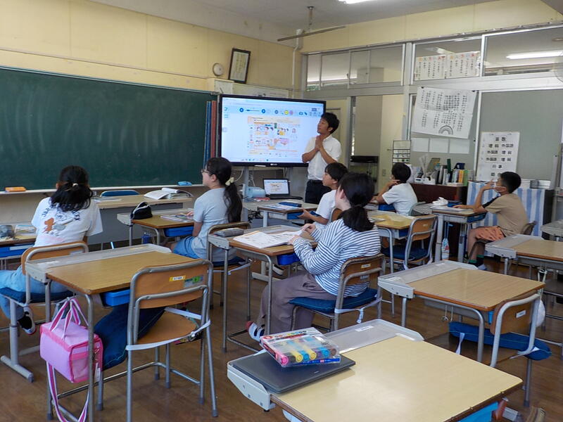5年生は、英語で山本先生といろいろな会話をして楽しんでいました! 山本先生の質問にみんなで上手に答えていました(英語で!)