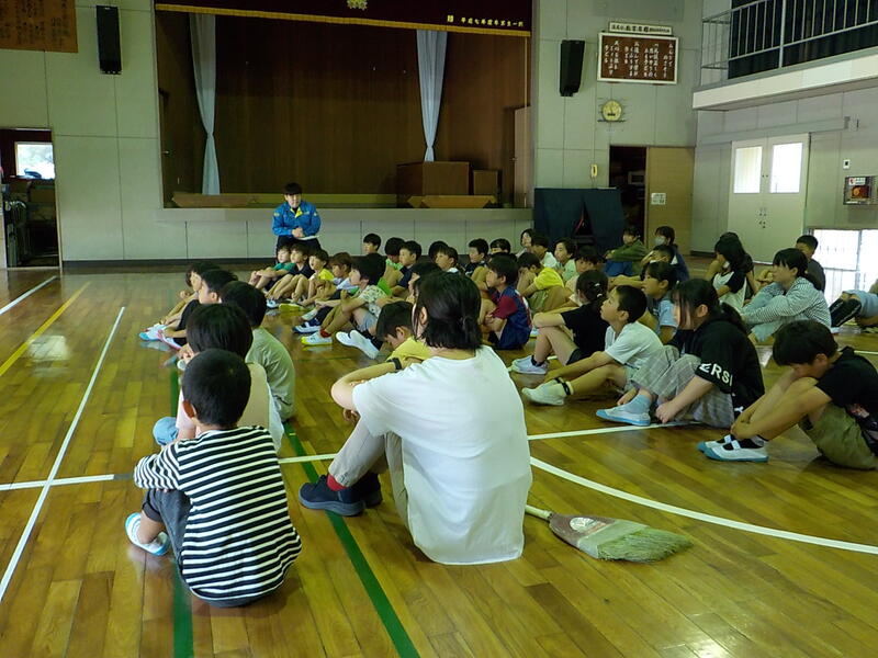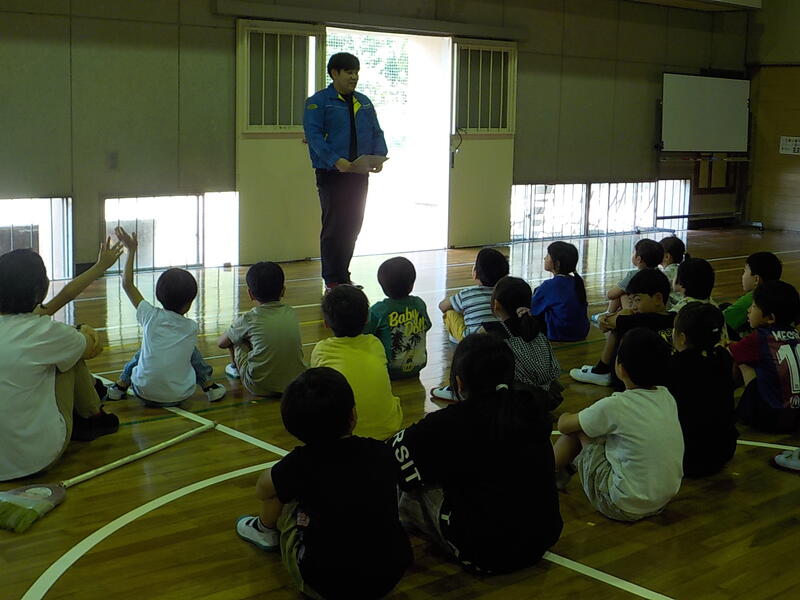 今日は、3時間目に「不審者避難訓練」をしました! 講師に来てくださった御船警察署のふなつさんが、「皆さんがとても真剣に訓練をしていたので、感心しました!」と感想を話してくださいました