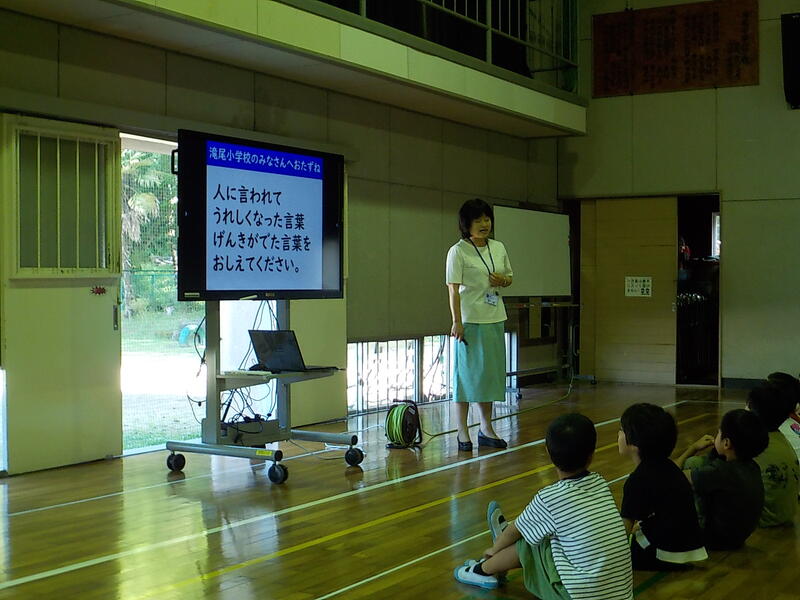 校長講話は「ちくちく言葉とふわふわ言葉」のお話でした! 校長先生のお話で、近くの人と意見を交換したり考えたことをみんなの前ではっぴょうしたりしました! 滝尾小学校がふわふわ言葉であふれる学校になるといいですね