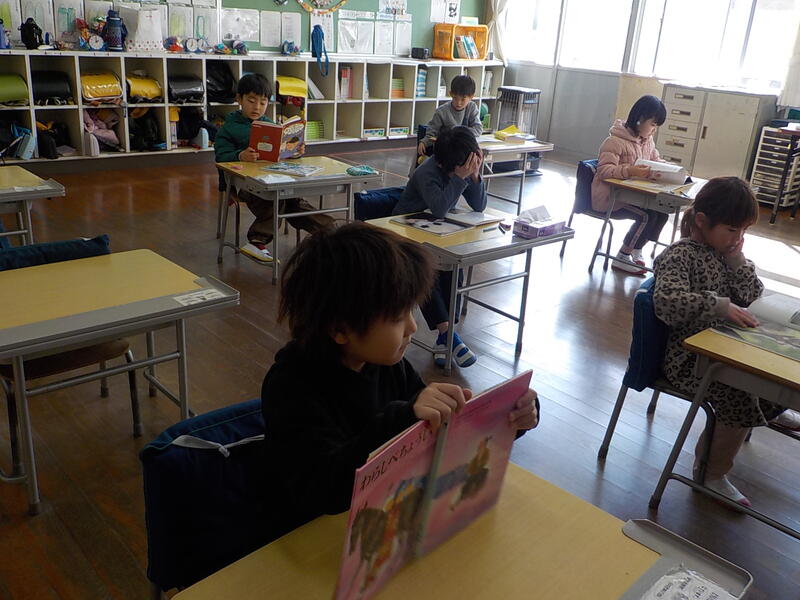 1年生は図書室で勉強、冬休みに読む図書の本を選んでいました! 大きな分厚い図鑑を2冊、「これにしよう!」と言って見せてくれましたが、持って帰れるのかな??