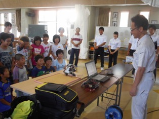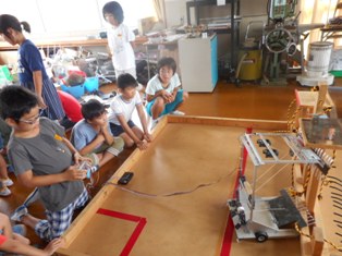 13日・14日の昼休み、御船中ものづくり部が小学生にロボットコンテストの作品体験をさせてくれました。さすが日本一です。中学生は、はきはきと子どもたちに接していました。子どもたちの中には操作を短時間でマスターする子もいて、日頃の成果?なのかなぁと思いました。