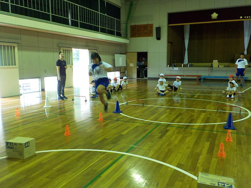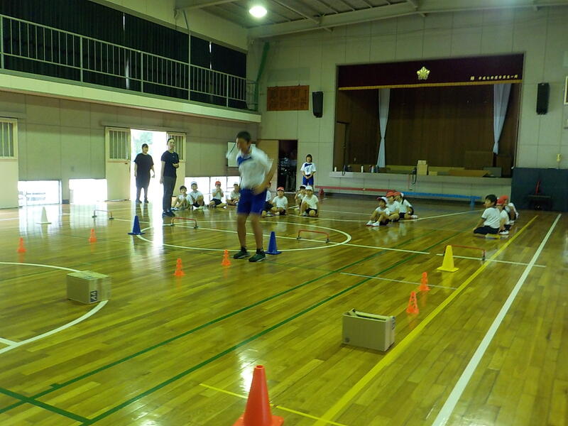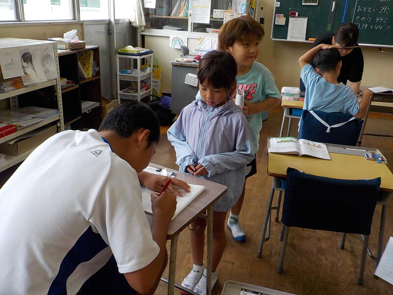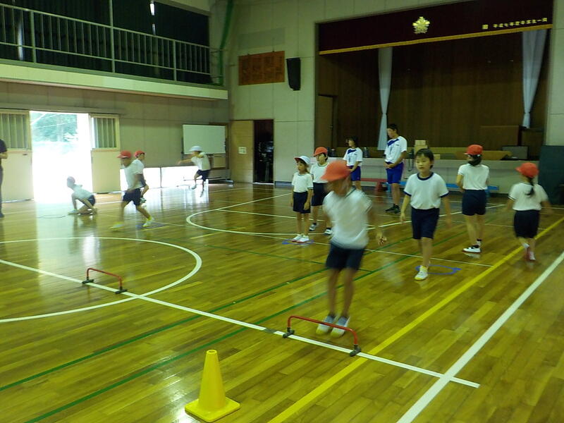 中学生のお二人には、1年生と2年生の教室にそれぞれ入っていただきます! 体育の時間には、お手本を見せてくれたりして、とても助かりました