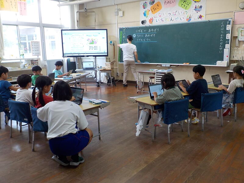 1年生のタブレットを使ったeライブラリのドリル学習では、そばでやさしく教えてくれました!