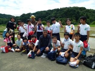 1日(金)3・4時間目に5年生が横野の丸山さんの指導で田植え体験を行いました。数日延期しての実施でしたが、蝉の音が響き渡る横野の田んぼで子どもたちは真剣に苗一本一本を丁寧に植えました。丸山さんから「○○君、足下を平してから植えるのはいいね。」など、お褒めの言葉ももらいました。また、「(地震による水路の被災で)上の方で田植えができないところもあった」とお聞きし、地震の影響の大きさをあらためて感じました。
