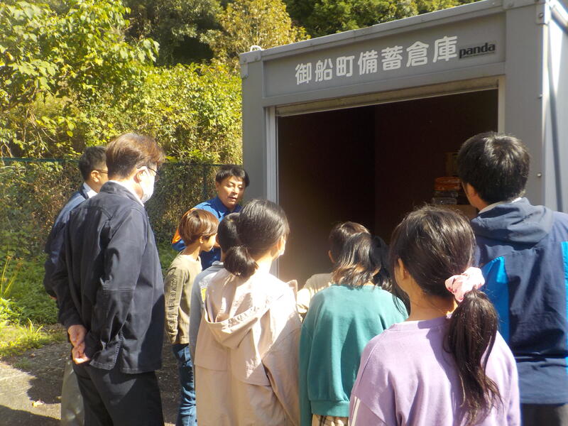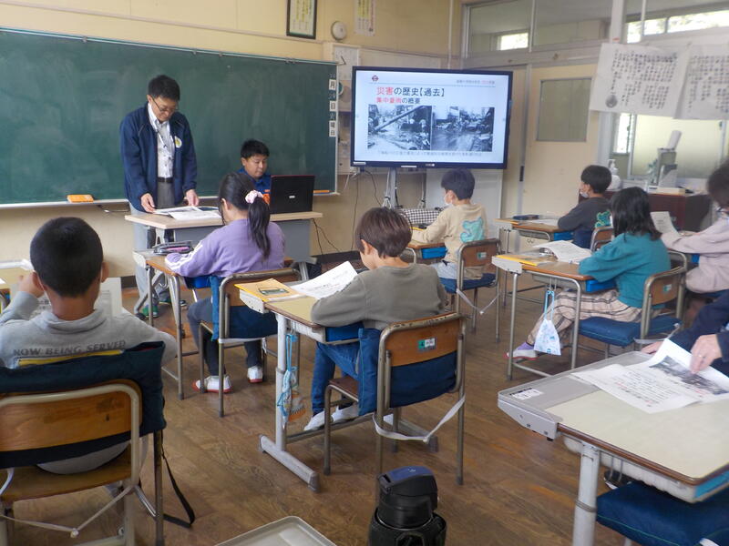 役場の危機管理防災課の井上さん、斉藤さんに来ていただいて、これまでの災害やその時の消防団の活躍等のお話をしていただきました。備蓄倉庫の中も見せていただきました! 4年生それぞれが防災についての考えを深めることができました