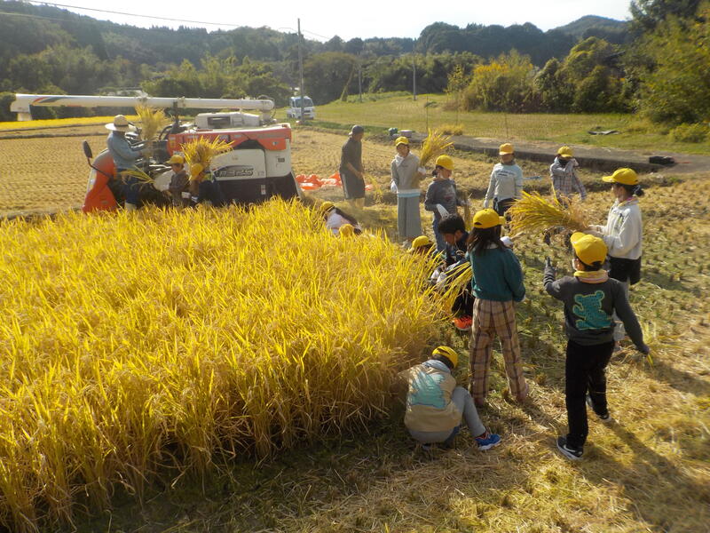 4、5年生は、午後から稲刈りに出かけました!