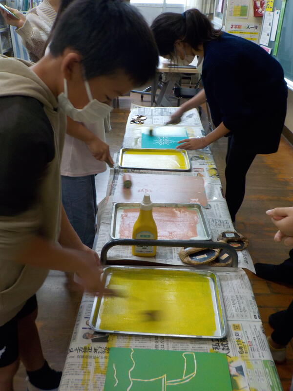 4、5年生は、多色刷り版画を頑張っていました