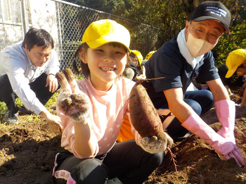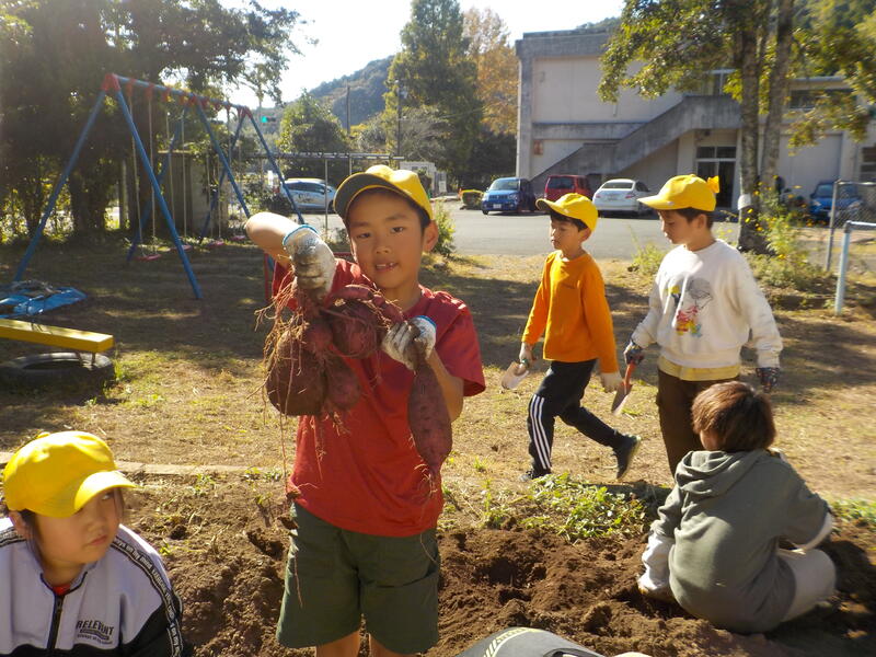 1、2年生で「いもほり」をしました! 大きくておいしそうなさつまいもがたくさんほれましたね! 食べるのが楽しみですね