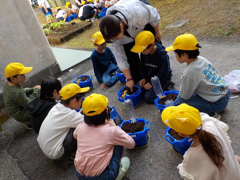1、2年生で、チューリップの球根植えをしました! 花の色を自分たちで選んで植えていました! これから寒い冬を越して、花開くときが楽しみです