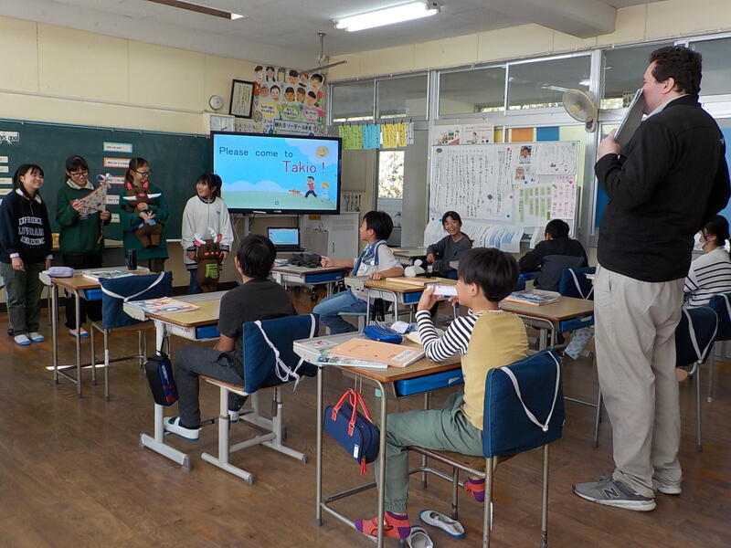 6年生の英語の時間、今度の日曜日に行う英語発表を、学級のみんなとクリス先生に披露していました! クリス先生からの英語での質問に、「おぅ! ちょうちょがすきデェス!」と英語っぽい日本語で答えていました