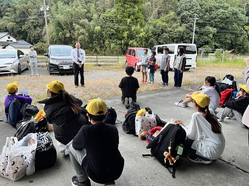 花丸熊本港での結団式。 修学旅行の2日間は、七滝中央小の6年生と一緒に行動します! 楽しい思い出をたくさん作りましょうね興奮・ヤッター!