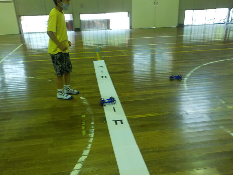帆の面積が狭い方が、意外に車が速く進みましたね! さて、どうしてでしょう・・・。この大会の後、たくさん議論しましたが、その内容をお家の人に伝えられるかな?? 伝えられたらいいな!