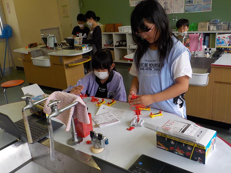 4年生は、理科「電池のはたらき」の学習で、「電池1こと2ことでは、モーターの回り方が違うのか」を実験しました。モーター(風車)がよく回るので、子供たちは「わあ!!」と感動していました