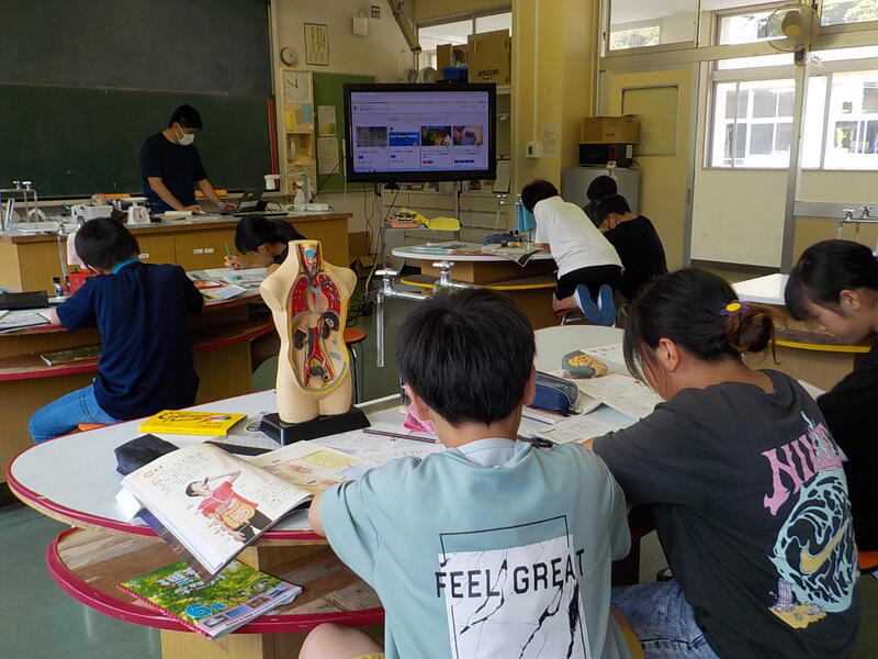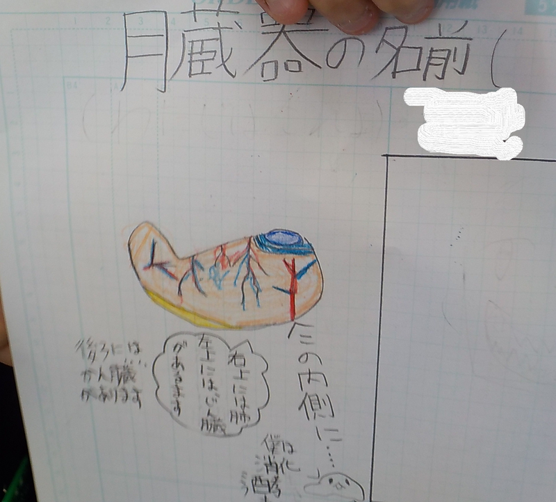 6年生は、理科「体の中のつくり」を勉強していました。臓器の中からはたらきを調べたいものを選んで、紙に絵と言葉でまとめていました。