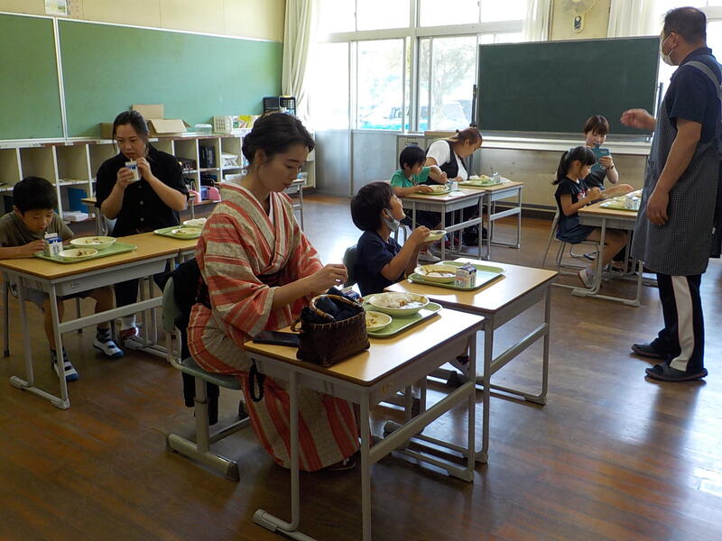 今日は、1年生保護者の給食試食会を行いました
