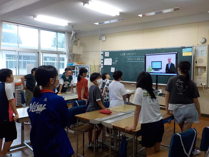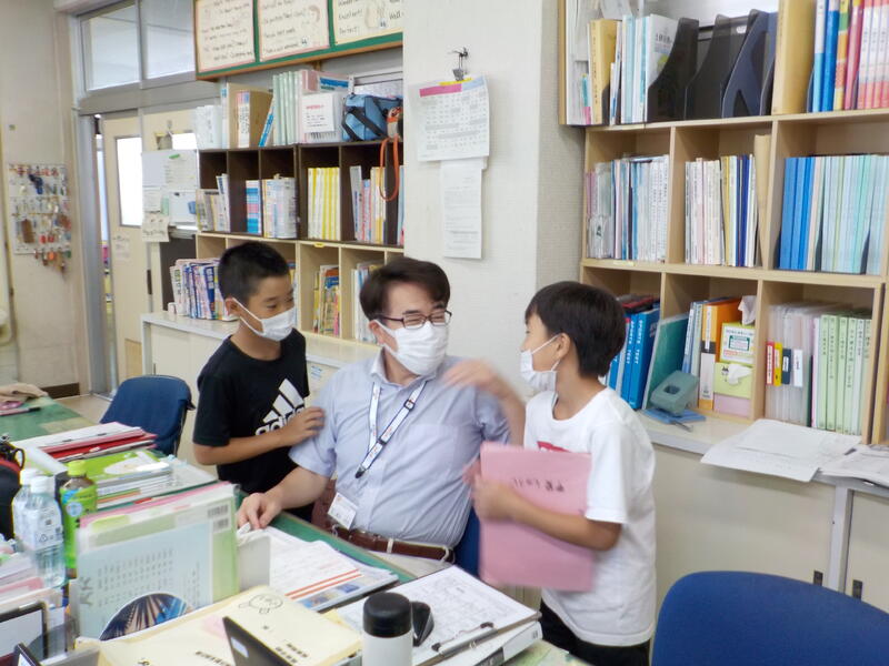 職員室で、4年生との間に、好きな時間を話題にした会話が花咲きました(英語で