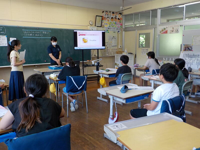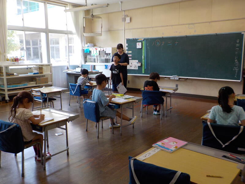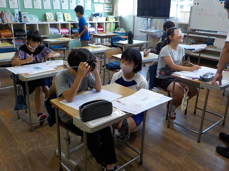 6年生は、英語の学習で「夏休みの思い出」をみんなにお話しするために、英語で作文をしていました